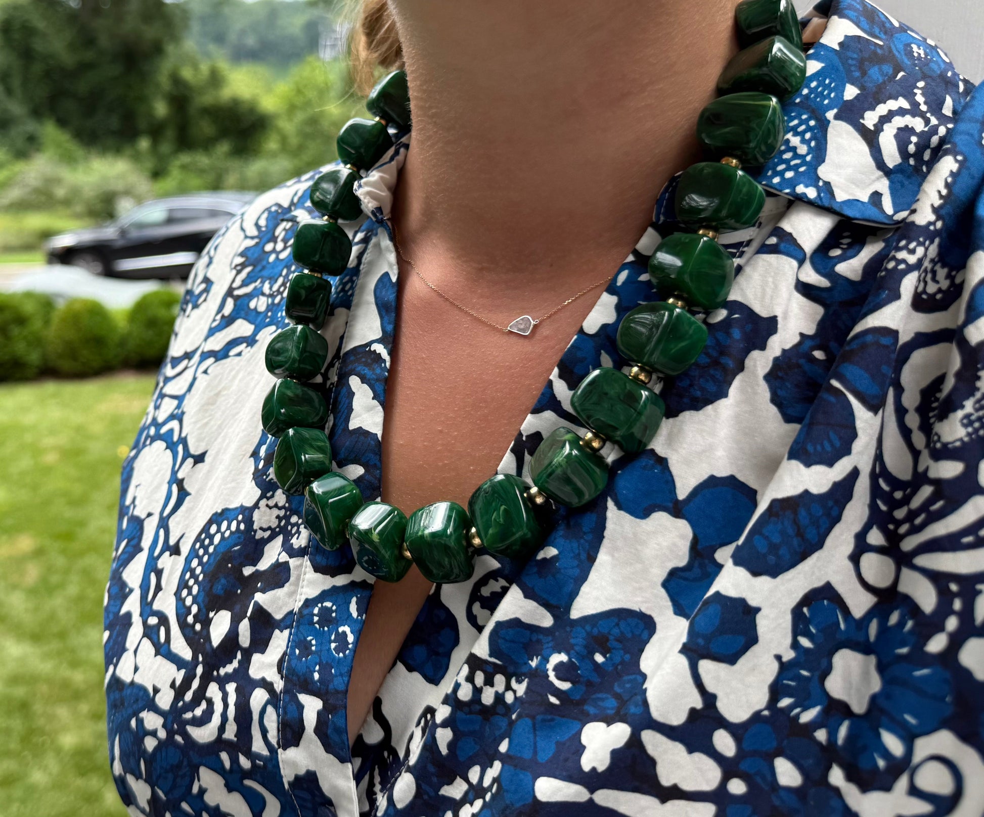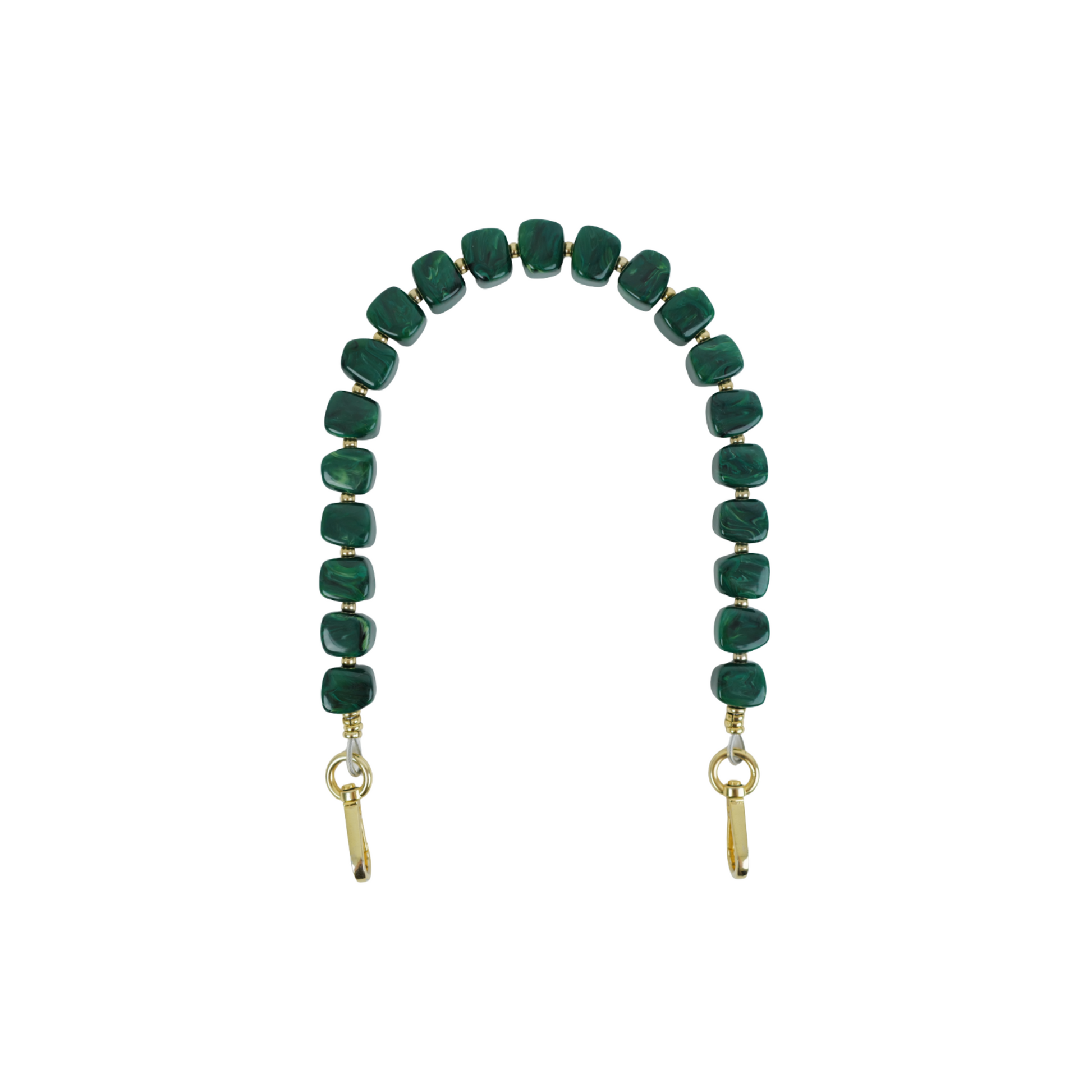 Introducing a chic addition to your wardrobe, these beautiful Italian resin gemstones are sourced from the finest artists in Italy who primarily make jewelry. We only wanted to offer the very finest when adding a handmade strap to our collection so we found artisans who are known for their statement jewelry to make our beaded straps. The clasps make them easily removable to match with different clutches and different outfits. Can be paired with clutch or worn as necklace.