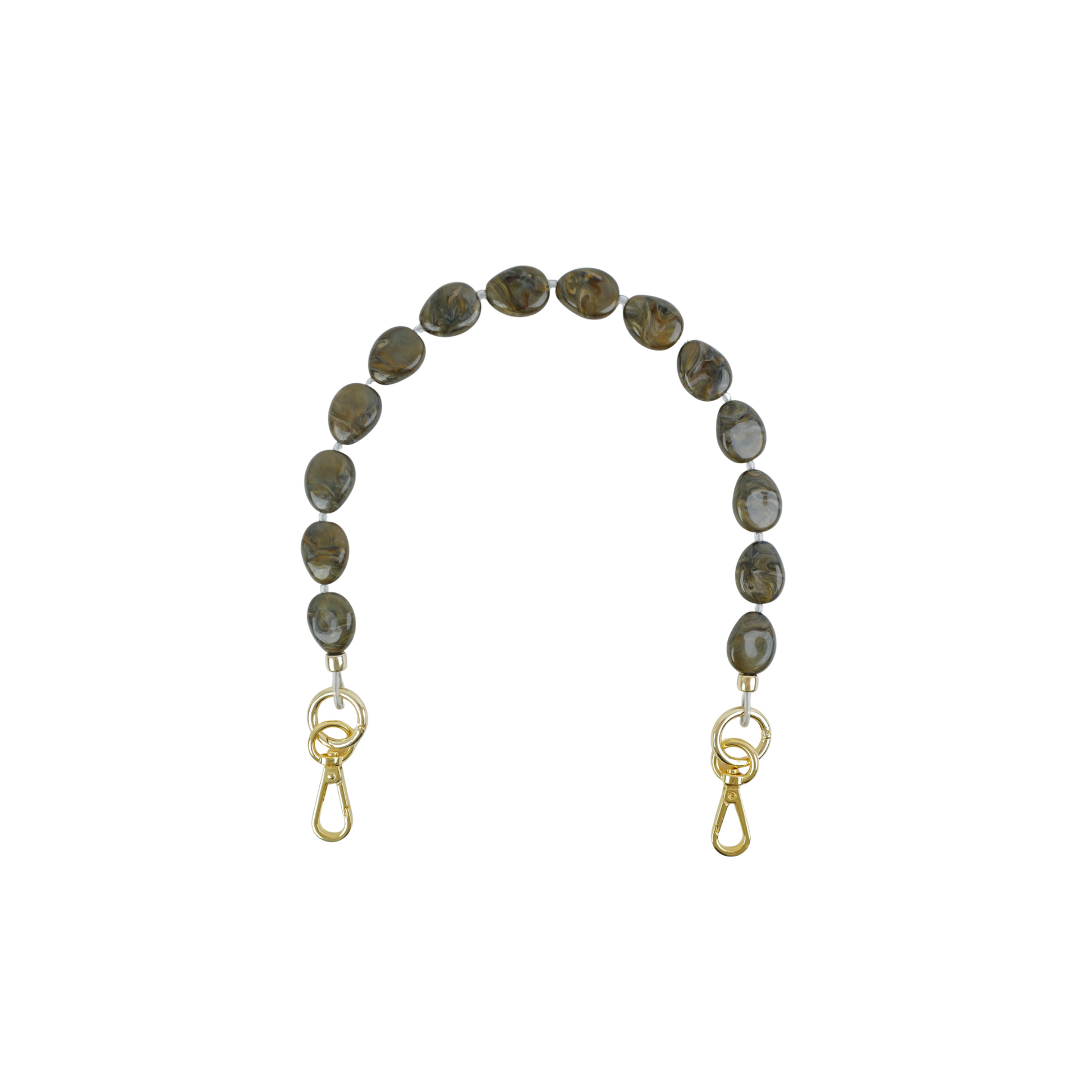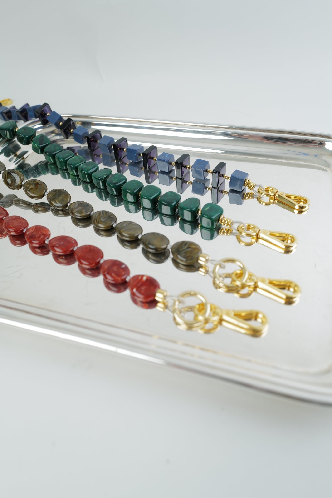 Introducing a chic addition to your wardrobe, these beautiful Italian resin gemstones are sourced from the finest artists in Italy who primarily make jewelry. We only wanted to offer the very finest when adding a handmade strap to our collection so we found artisans who are known for their statement jewelry to make our beaded straps. The clasps make them easily removable to match with different clutches and different outfits. Can be paired with clutch or worn as necklace.