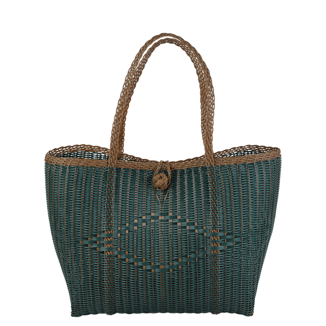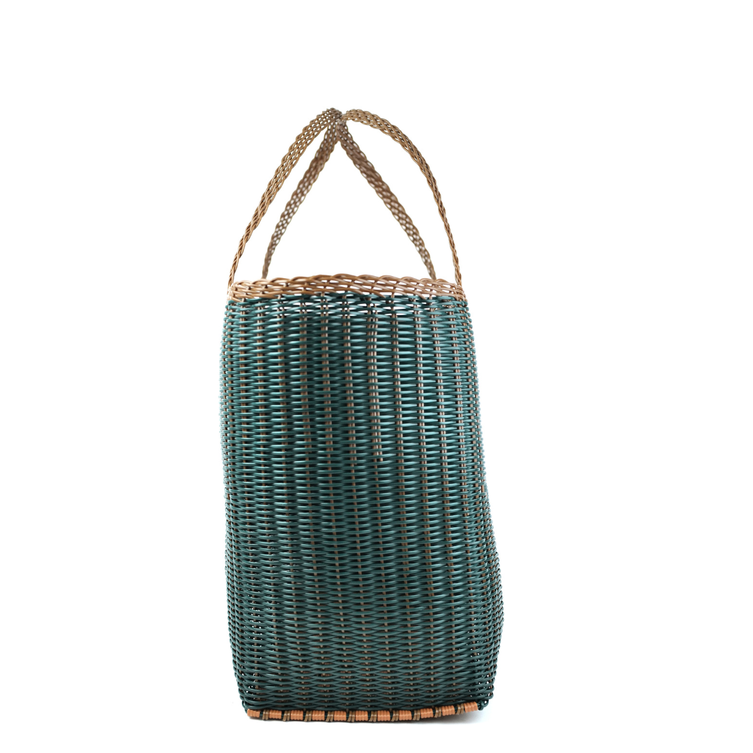 Medium is our bestseller. We love using it everyday for the grocery, work, school and weekend hauling. At the grocery, barn, pool, or beach, it stands tall and never collapses. The handles are woven continuously around and through the basket so it can carry any weight. It’s also the perfect travel bag and looks fabulous at your destination whether that is a beach vacation or ski resort. Sand dusts through it and snow drains away. The sturdy plastic is washable and will never fade or falter. You will love this forever.