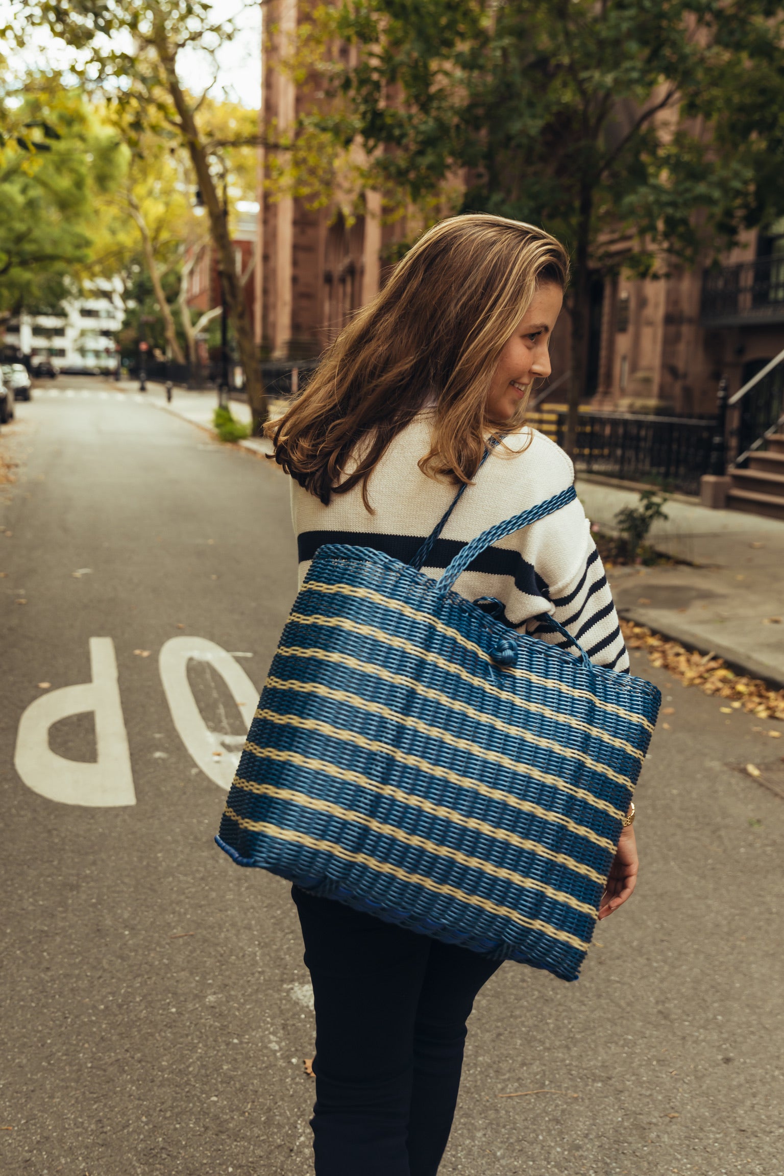 This is one of our year-round bestsellers. We love using it everyday for the grocery, work, school and weekend hauling. At the grocery, barn, pool, or beach, it stands tall and never collapses. The handles are woven continuously around and through the basket so it can carry any weight. It’s also the perfect travel bag and looks fabulous at your destination whether that is a beach vacation or ski resort. Sand dusts through it and snow drains away. The sturdy plastic is washable and will never fade or falter. You will love this forever.