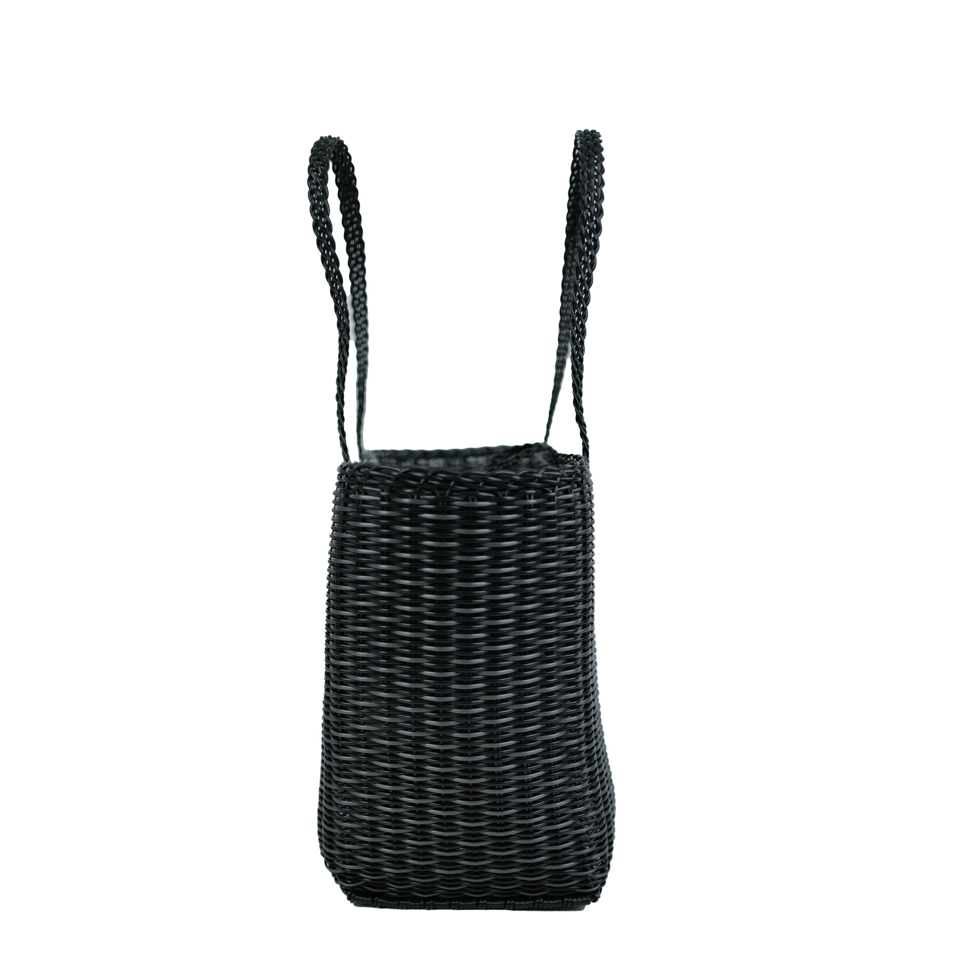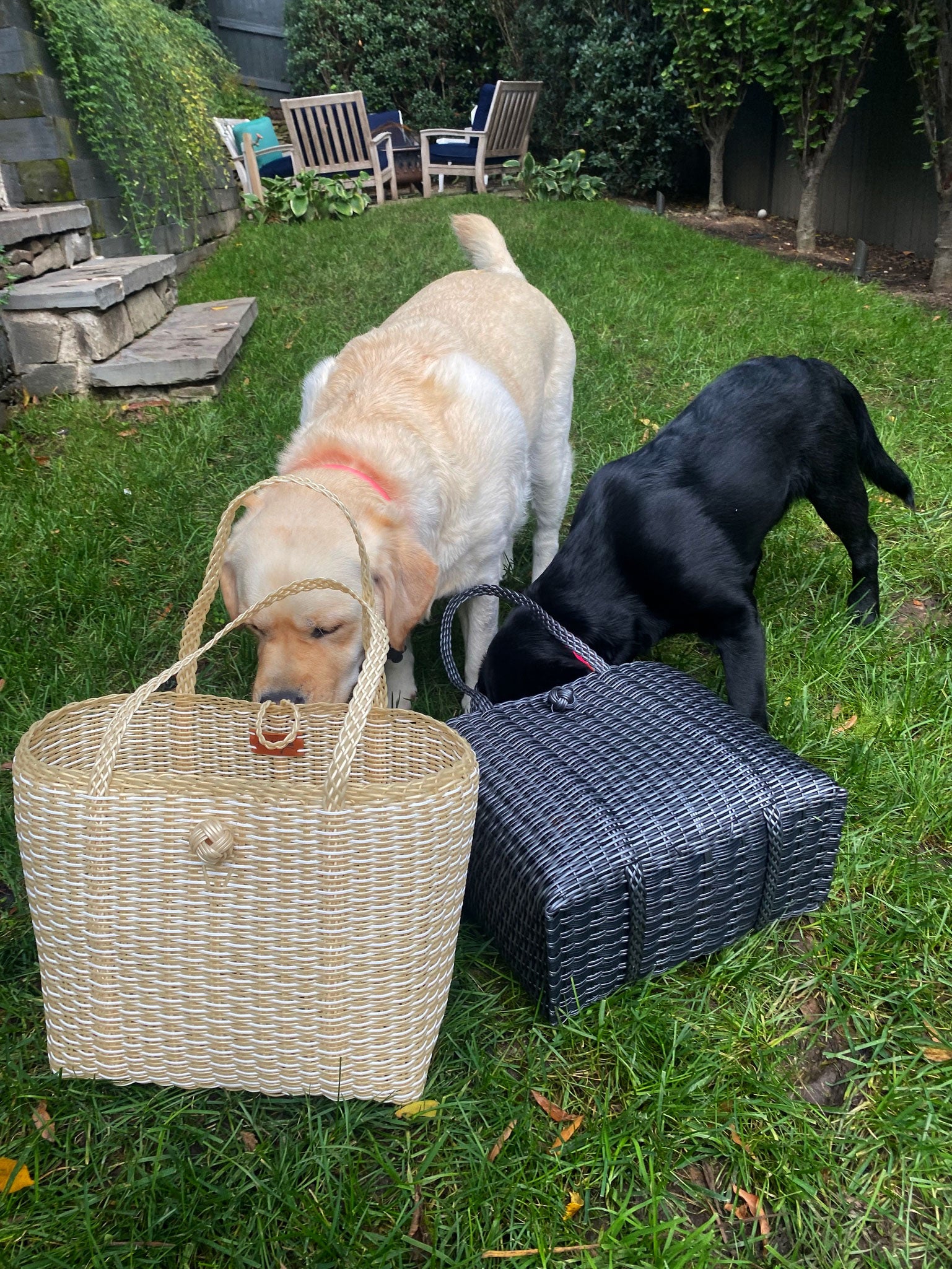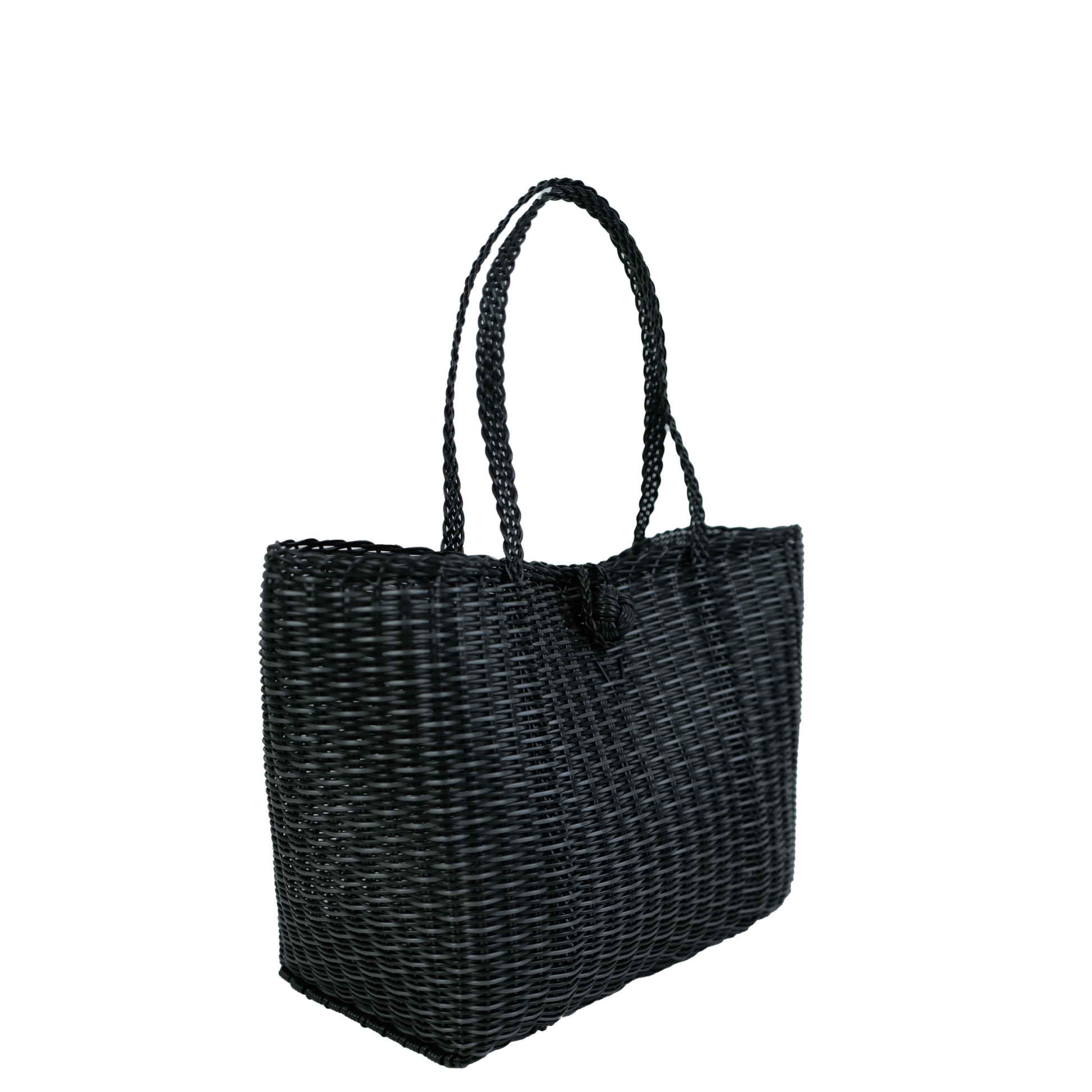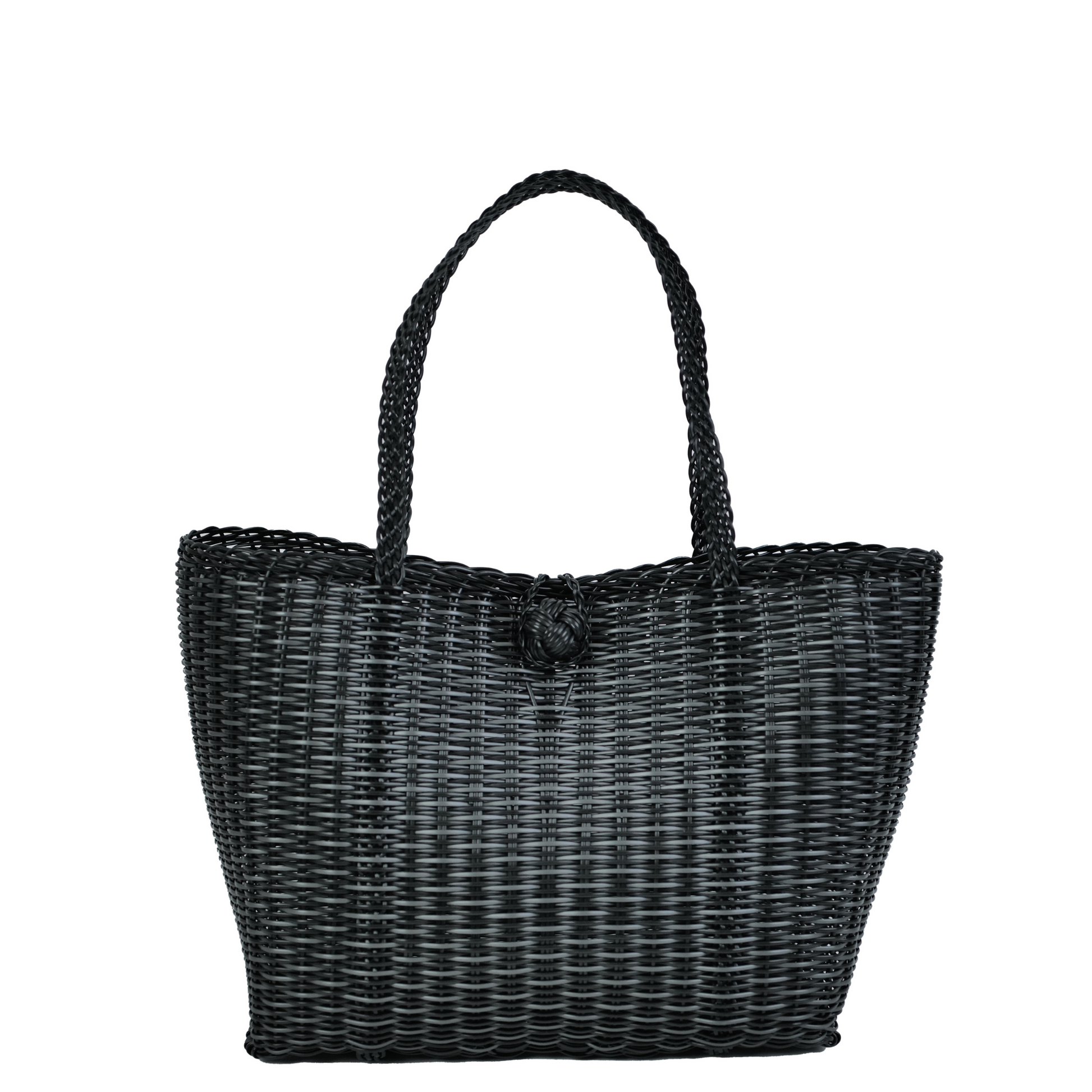 Our small with a braided handle is great as a tote. Use it as a pool bag or a walk to the market, but it is pretty enough to go to luncheon or meeting. Fits a laptop or file folders perfectly. The button adds a nice finish.