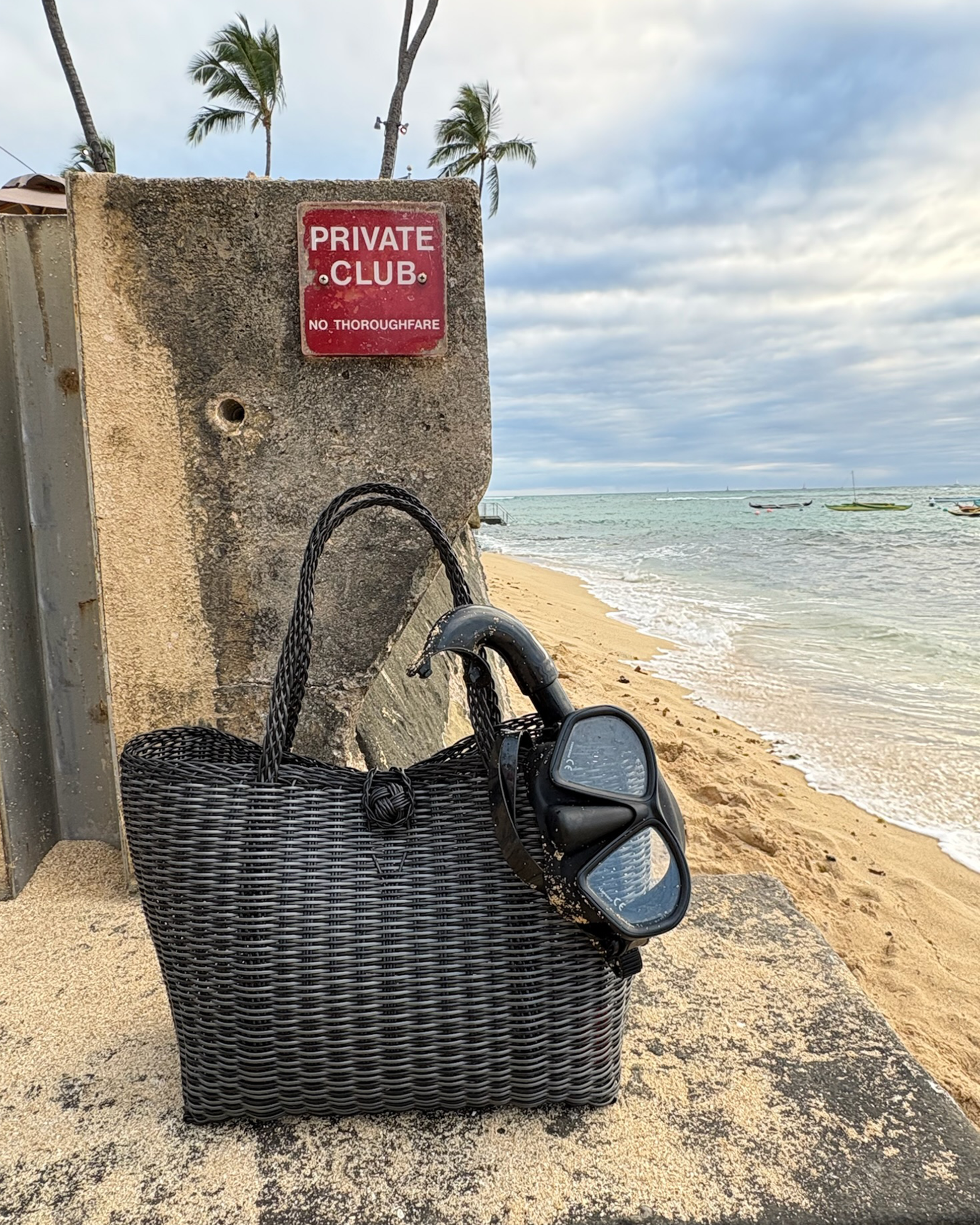 This bag is great all year round. Our small with its braided handle is great as a tote, briefcase, carry-on or everyday purse. Use it as a pool bag or a walk to the market, but it is pretty enough to go to luncheon or meeting. Fits a laptop or file folders perfectly. The button adds a nice finish.